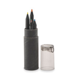 6 drewnianych kredek w drewnianym pudełku w kształcie ołówka.