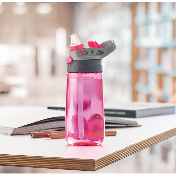 Butelka wykonana z Tritanu ™, który nie zawiera bisfenolu A z silikonowym ustnikiem na wieczku. Pojemność: 450 ml. Nie nadaje się do napojów gazowanych. Szczelna.