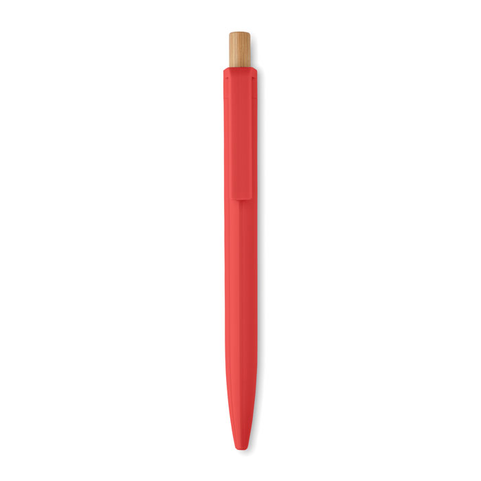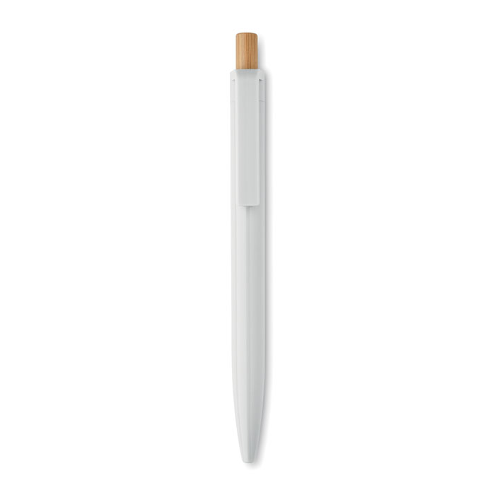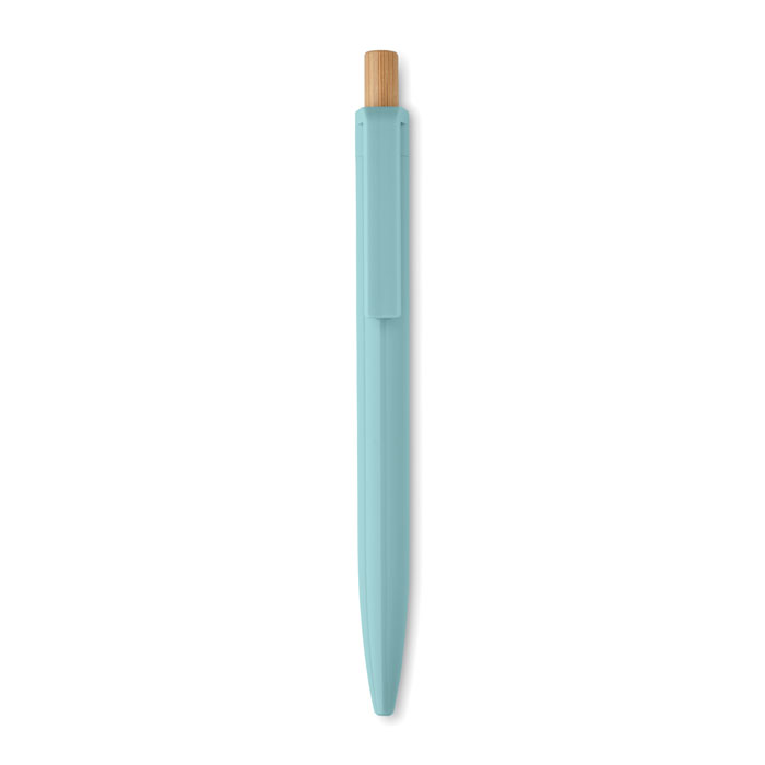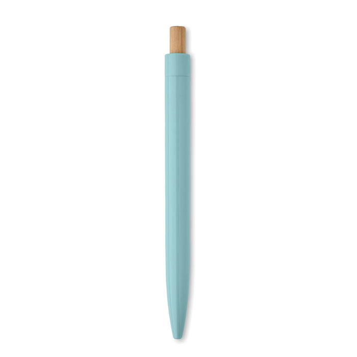 Długopis z bambusowym przyciskiem wykonany z ABS pochodzącego z recyklingu. Niebieski tusz.
