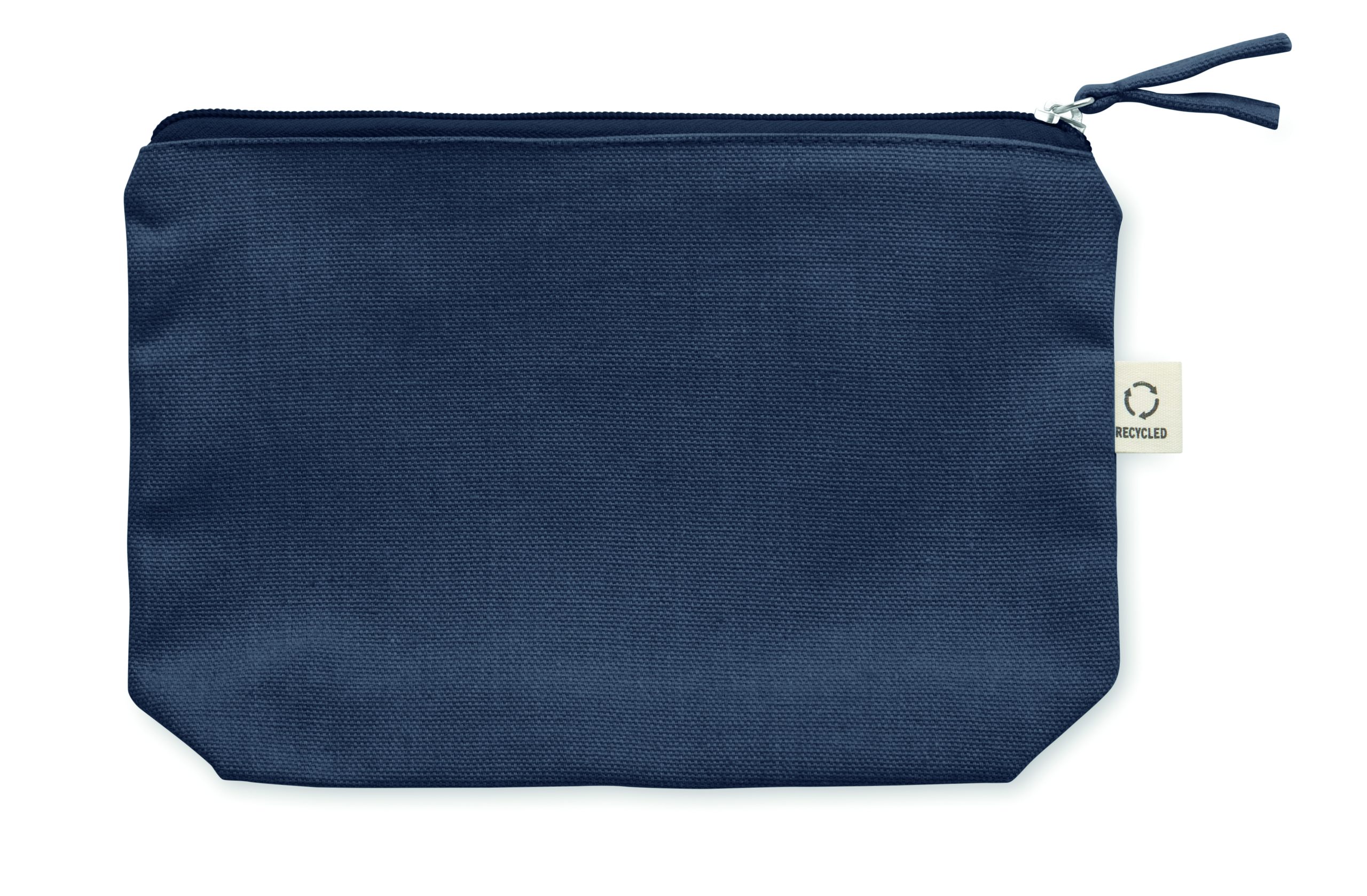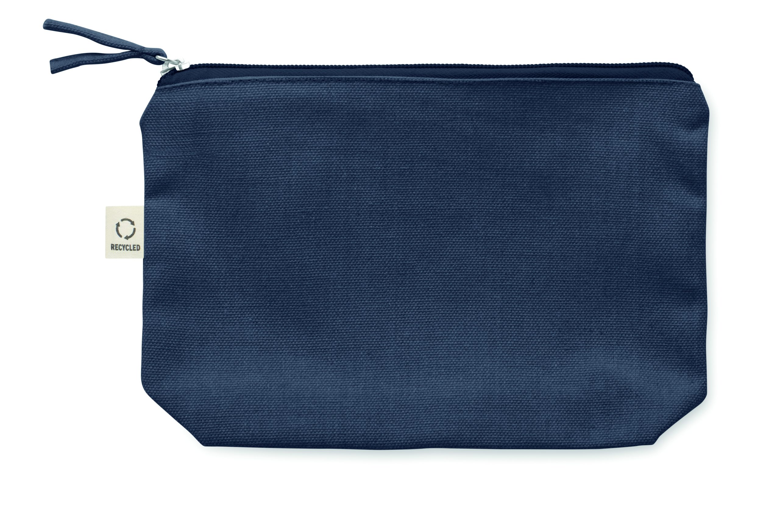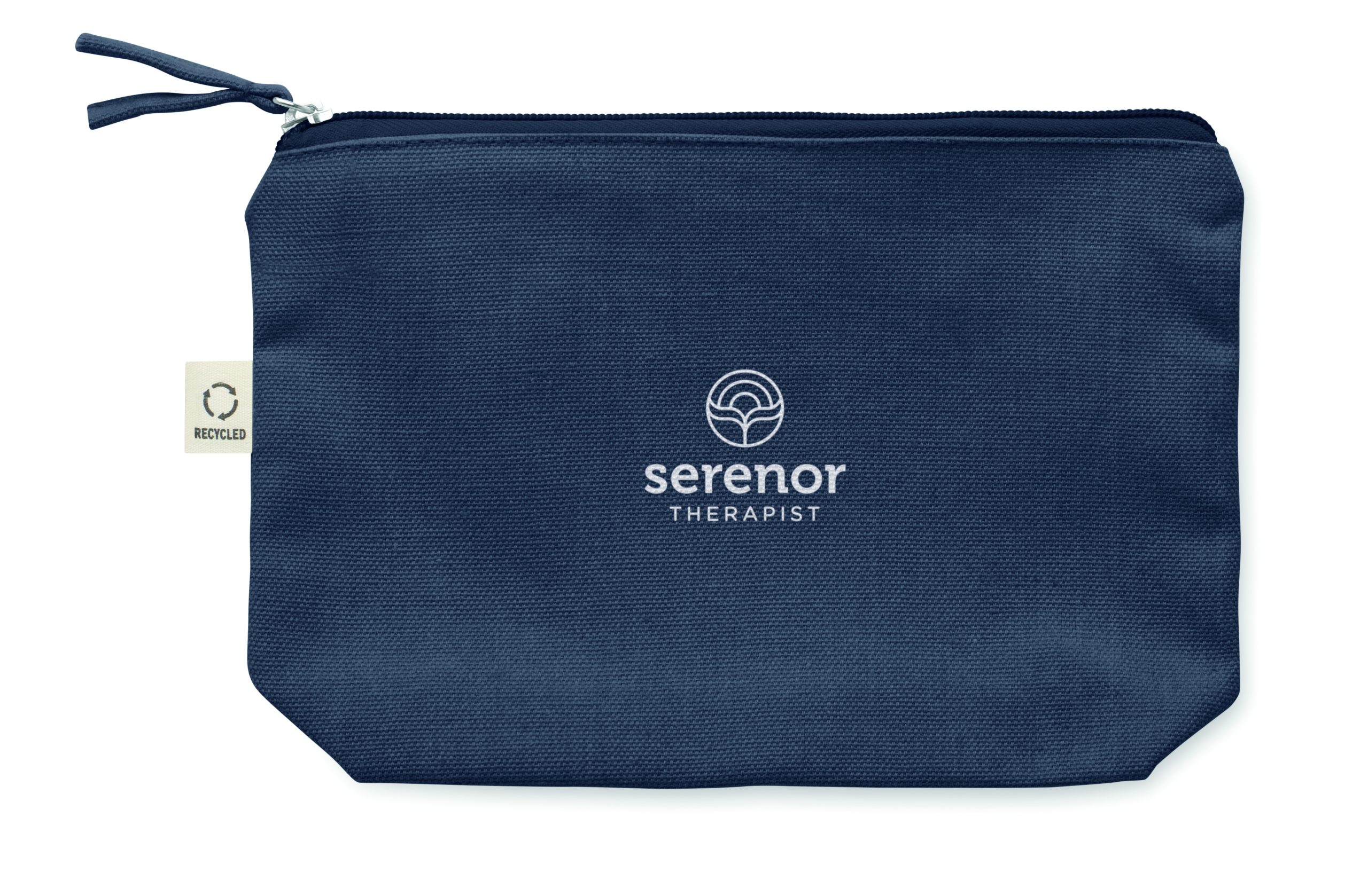 Torebka na kosmetyki lub inne akcesoria z materiału z recyklingu (70% bawełny z recyklingu i 30% poliestru RPET) z dopasowanym zamkiem błyskawicznym. 320 gr/m². Ten produkt może się kurczyć po zadrukowaniu.