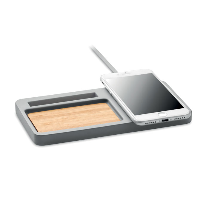 Ładowarka bezprzewodowa z cementu wapiennego i bambusa. Wyjście: DC5V/1A (10W), kompatybilna z najnowszymi systemami Android, iPhone® 8, X i nowszymi. Zawiera kabel USB 100 cm. Bambus jest produktem naturalnym, dlatego mogą występować niewielkie różnice w kolorze i rozmiarze poszczególnych elementów, co może mieć wpływ na ostateczny efekt zdobienia.