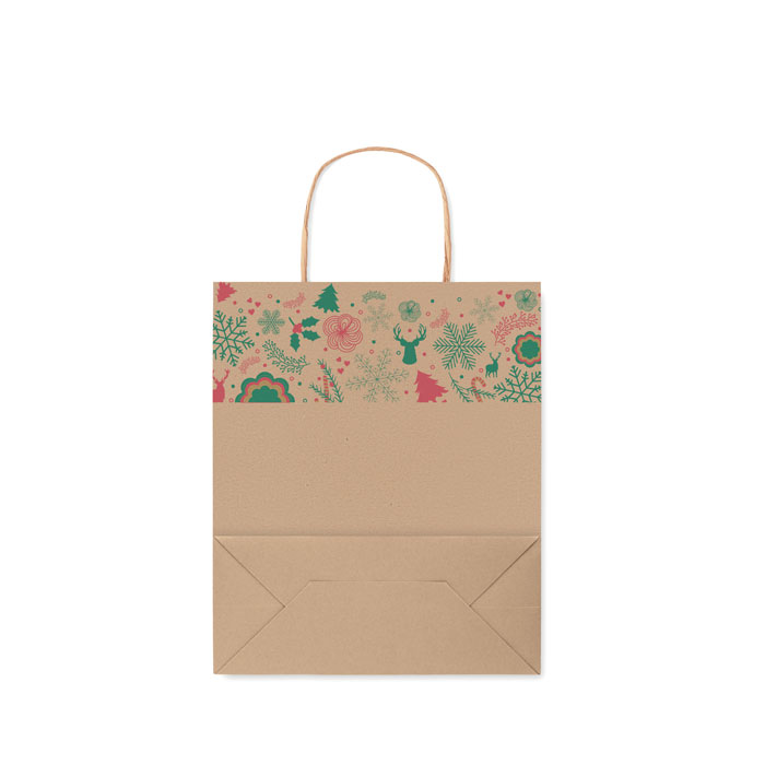 Świąteczna mała torebka papierowa na prezenty (w 50% z recyklingu). 90 gr/m². Wyprodukowano w UE. Pięknie zapakowany prezent sprawia wiele radości! Wykorzystaj tą świąteczną torbę i podaruj w niej wyjątkowy prezent. FSC®-certified | FSC MIX, P5.3, FSC-C213206