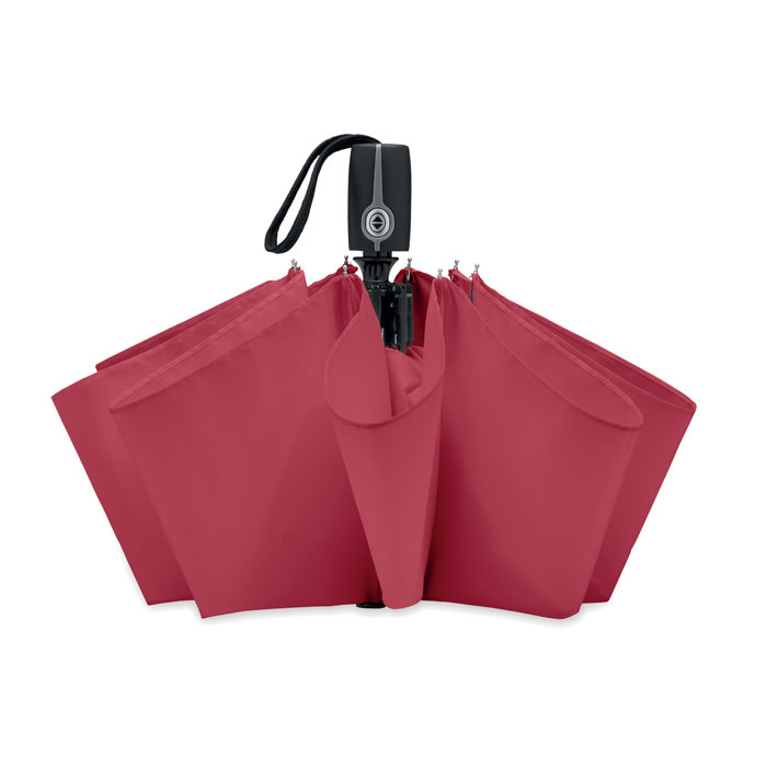 Ekskluzywny 21 calowy automatyczny parasol wykonany z wysokogatunkowego materiału 190T. Trzon metalowy, czarne ożebrowanie 2 sekcyjne wykonane z włókna szklanego zakończenia chromowane. Czarna gumowana rączka z automatycznym zamknięciem.