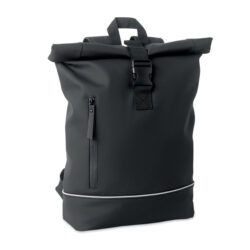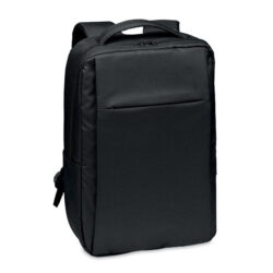 Plecak na laptopa 15 cali z poliestru 300D RPET. Posiada 2 duże komory zapinane na zamek błyskawiczny, podwójnie zasuwane kieszenie przednie i boczną kieszeń z siateczki. Wyściełane plecy i szelki.