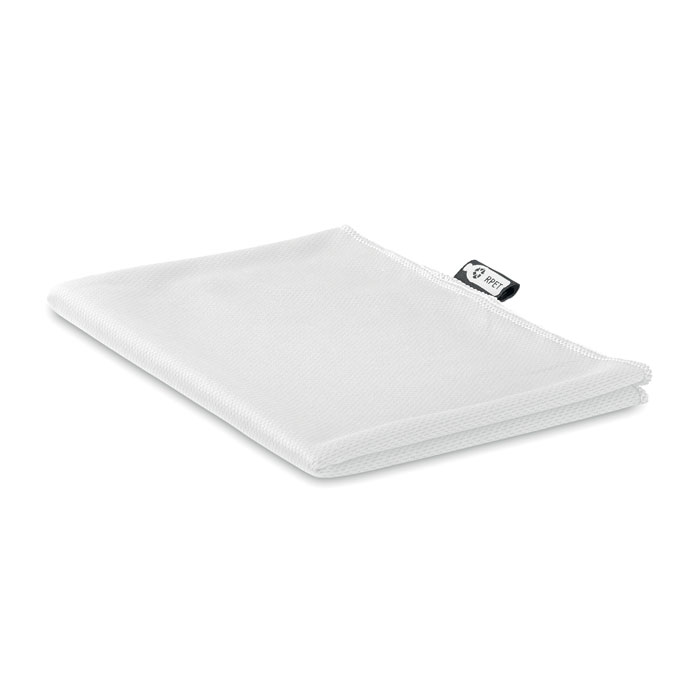 Ręcznik sportowy RPET o wysokiej chłonności wody, w zestawie worek z RPET.