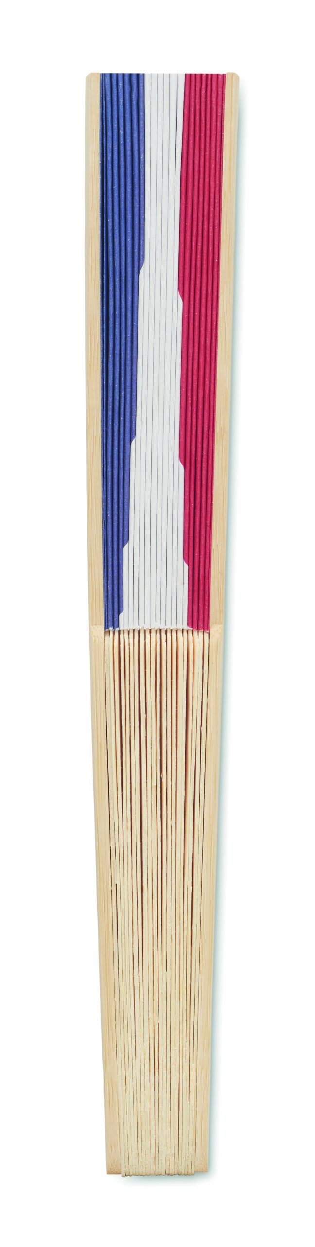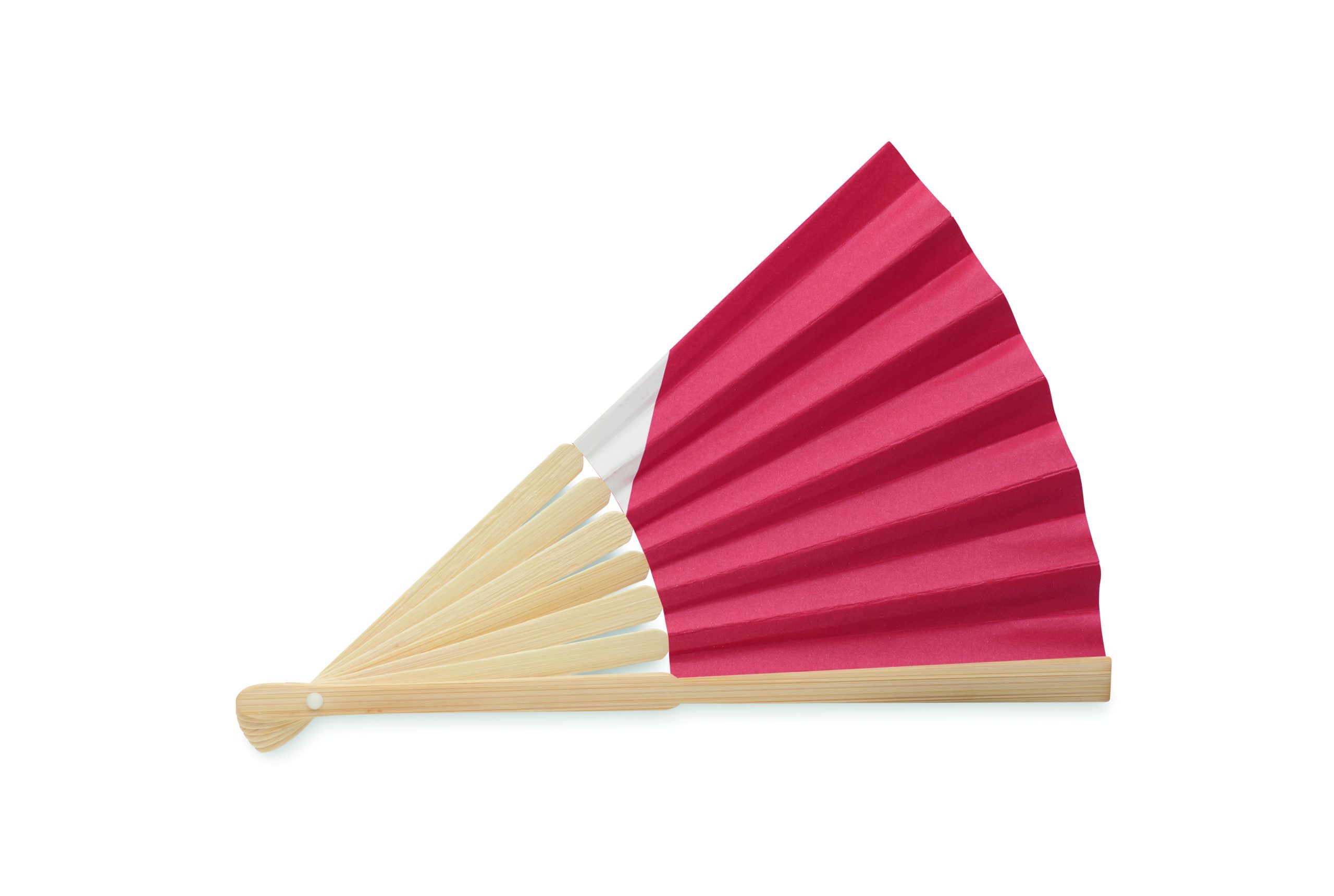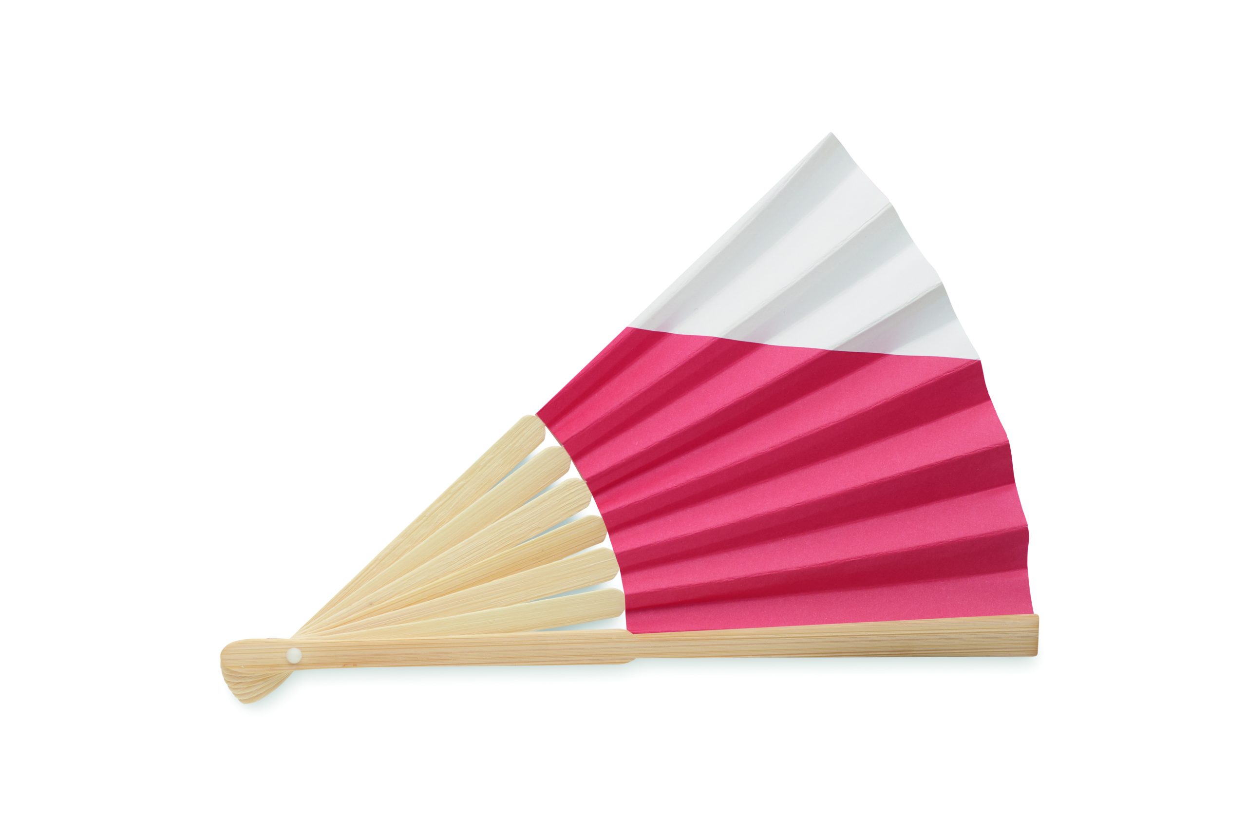 Wykonany z bambusa ręczny wachlarz z flagą na papierowym materiale.
