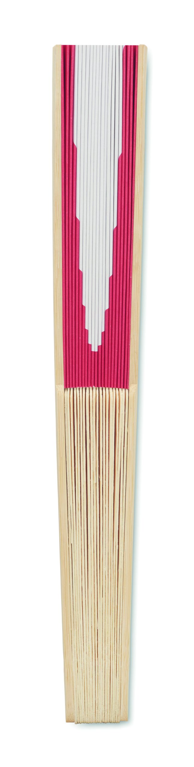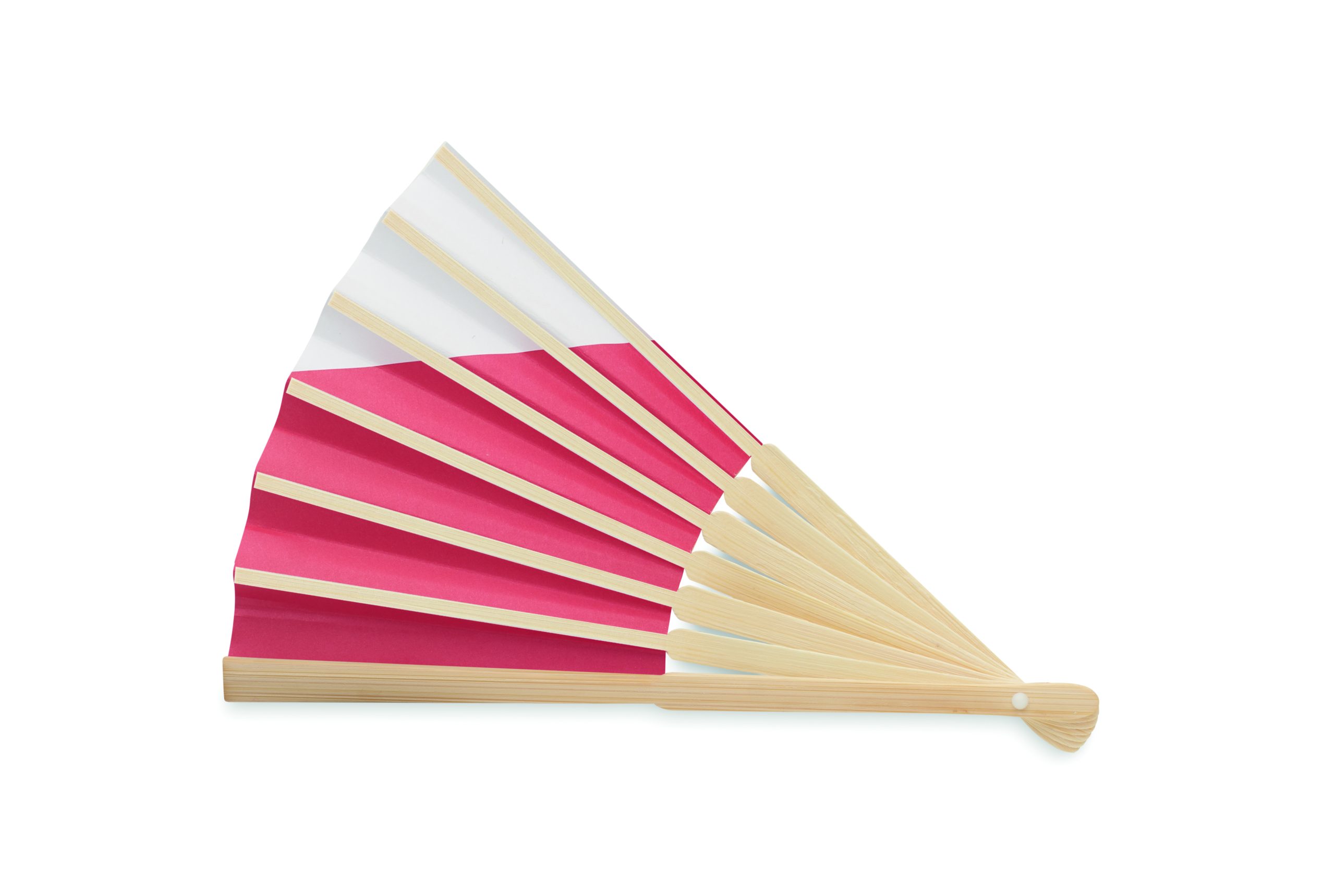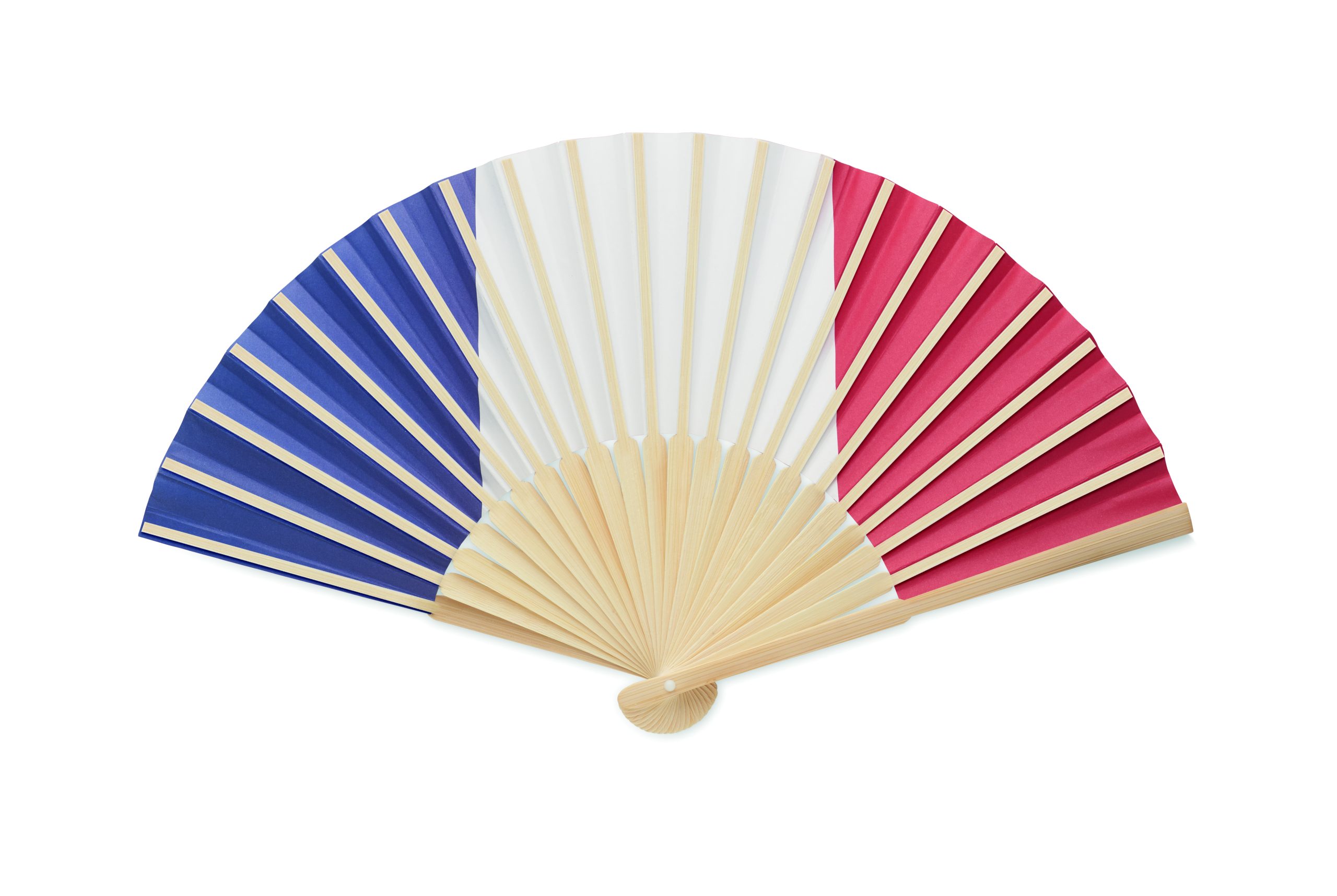 Wykonany z bambusa ręczny wachlarz z flagą na papierowym materiale.