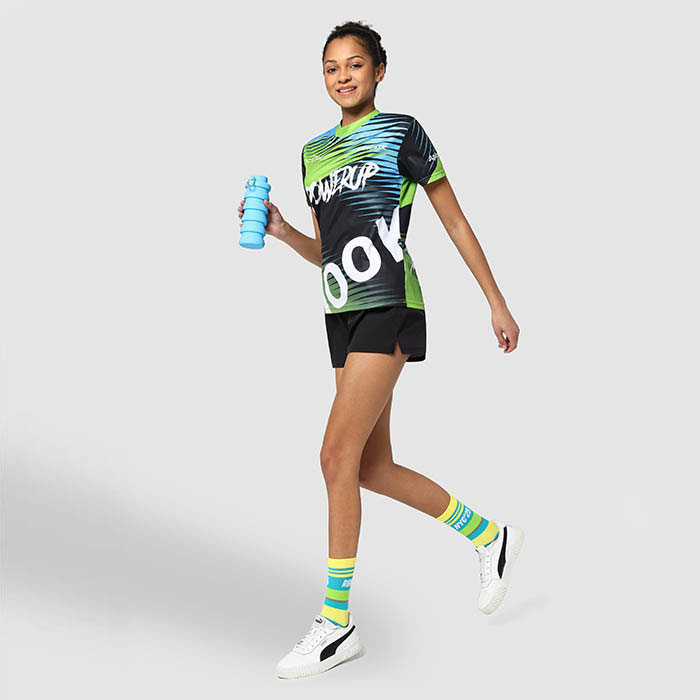 Składana silikonowa butelka z pokrywką ze stali nierdzewnej i z aluminiowym karabińczykiem. Karabińczyk nie jest przeznaczony do wspinaczki (nie do użytku profesjonalnego). Pojemność: 500 ml.