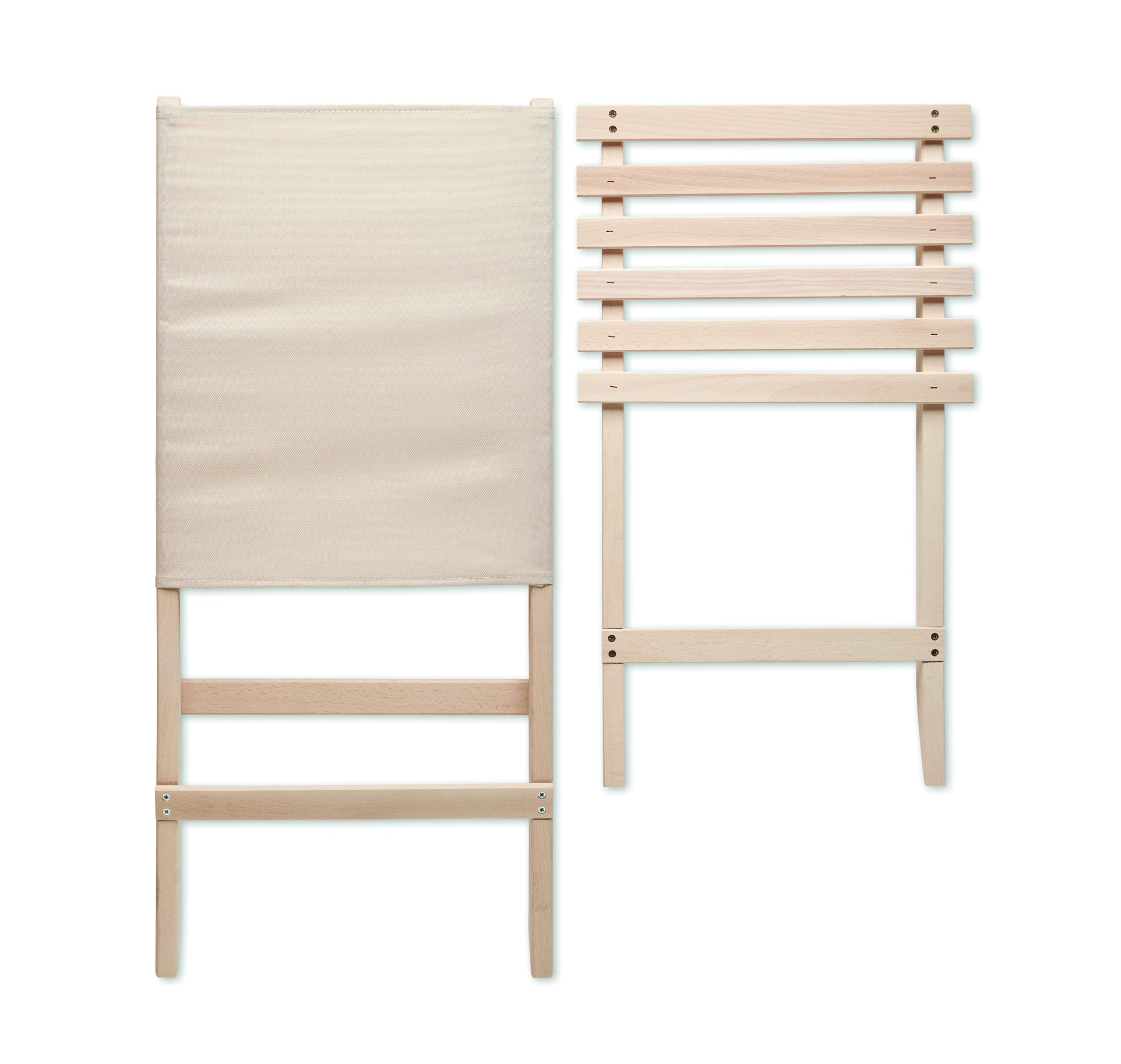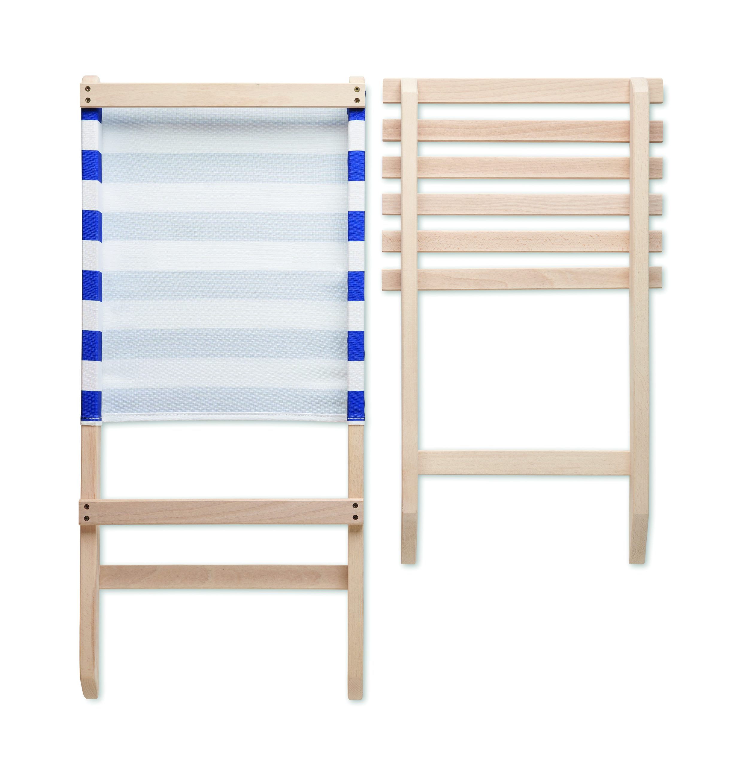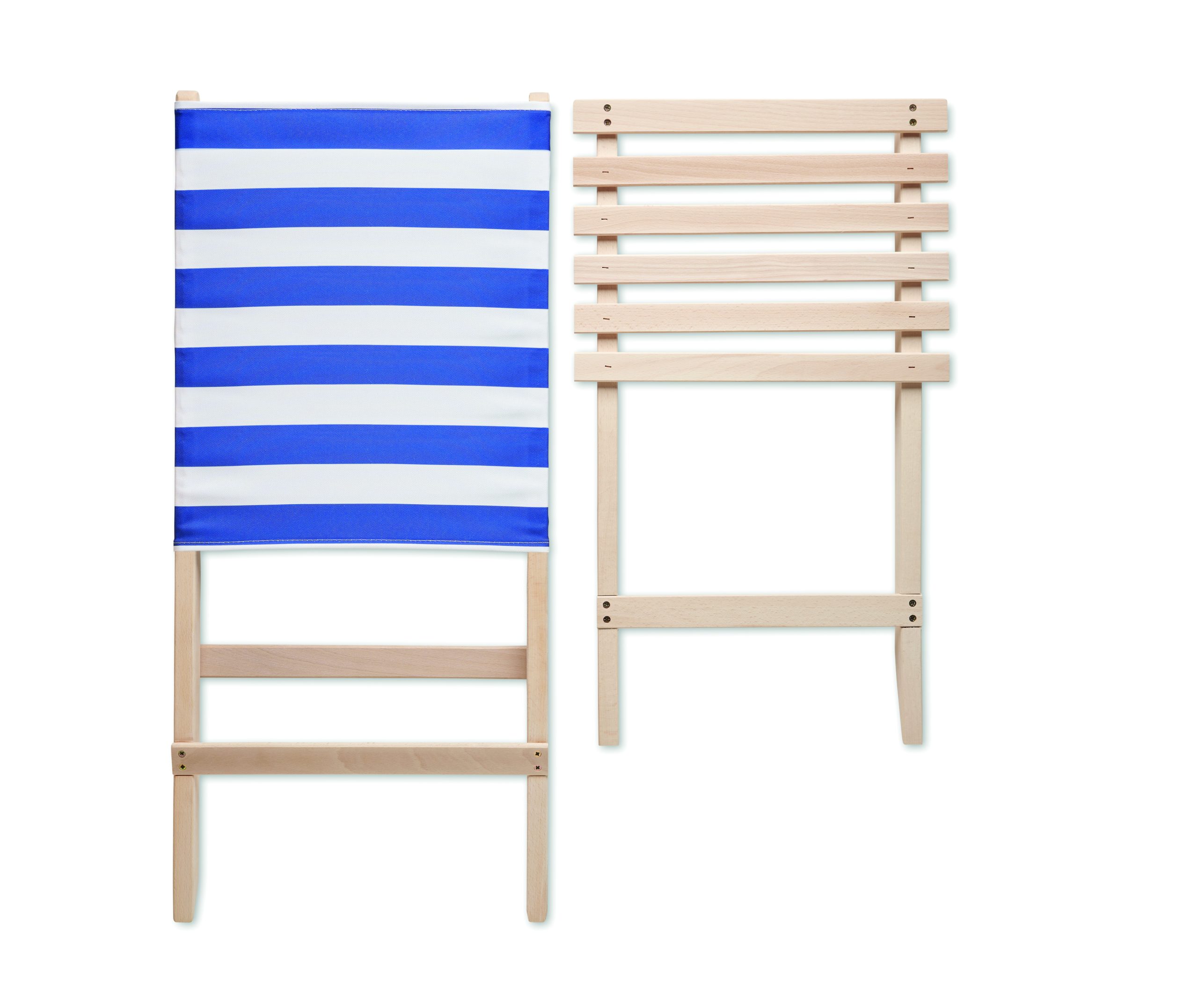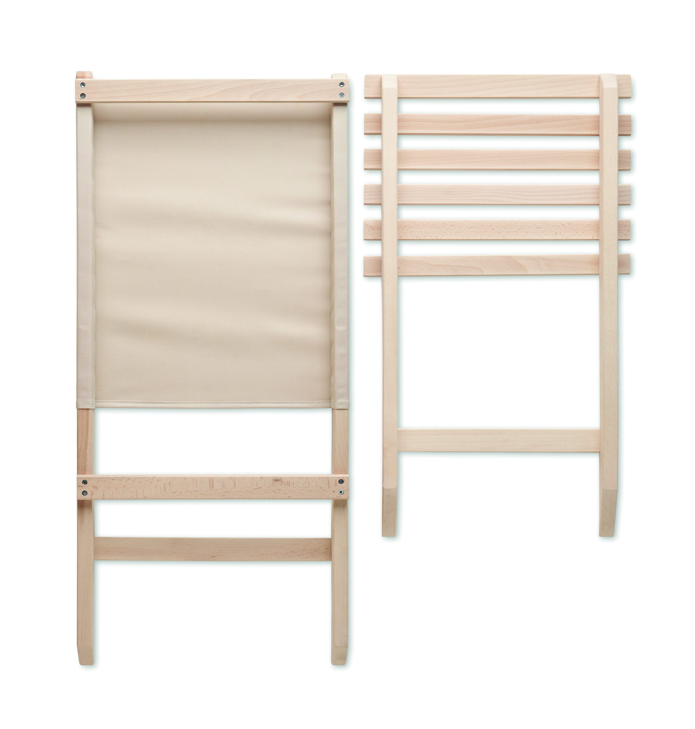 Składane, plażowe krzesło drewniane z niskim profilem siedzenia. Oparcie z tkaniny poliestrowej. Max: waga 95 kg. Wyprodukowano w UE. Ten przedmiot może być dostarczony tylko w wielokrotności opakowania zewnętrznego zawierającego 2 szt.
