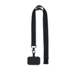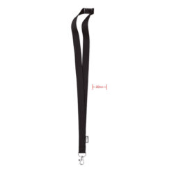 Smycz z poliestru z wysuwanym uchwytem na identyfikator oraz złączką bezpieczeństwa. Znakowanie sublimacją jest możliwe tylko na białych produktach.