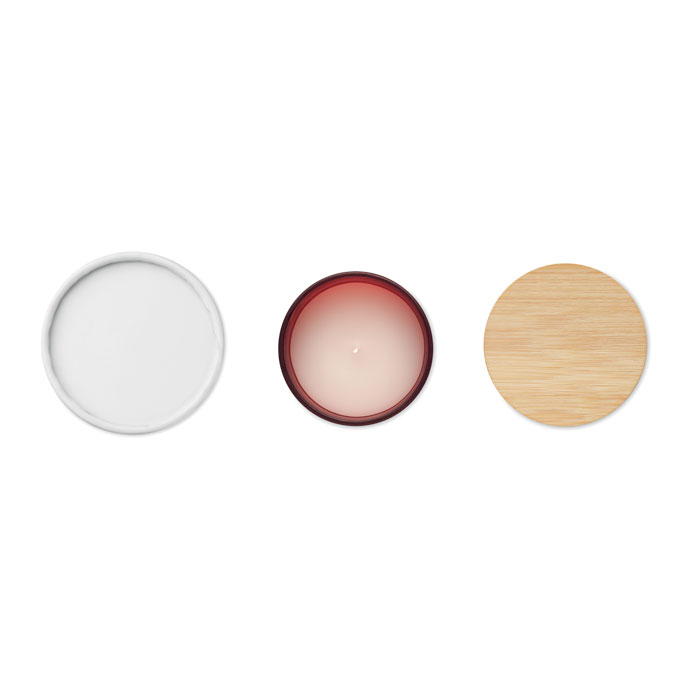 Wosk roślinny, świeca roślinna o zapachu cynamonu, wanilii, drzewa sandałowego lub jaśminu w szklanym, matowym słoiku z bambusową pokrywką. 280 gr. Czas palenia: 46 godzin. Zapakowane w papierowe pudełko prezentowe w kształcie tuby. Bambus jest produktem naturalnym, dlatego mogą wystąpić nieznaczne różnice w kolorze, wzorze i rozmiarze.