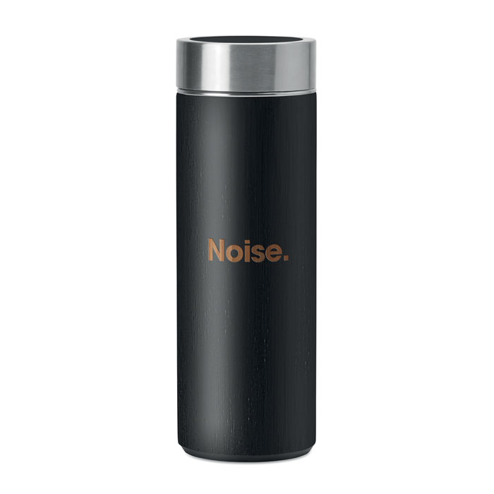 Termos z podwójnymi ściankami, stal nierdzewna z bambusową obudową, 400 ml, z dodatkowym zaparzaczem do herbaty. Ponieważ bambus jest materiałem naturalnym, kolory poszczególnych produktów mogą się różnić. Bambus jest produktem naturalnym, dlatego mogą wystąpić nieznaczne różnice w kolorze, wzorze i rozmiarze. FSC®-certified | FSC 100%, N5.7, FSC-C213206