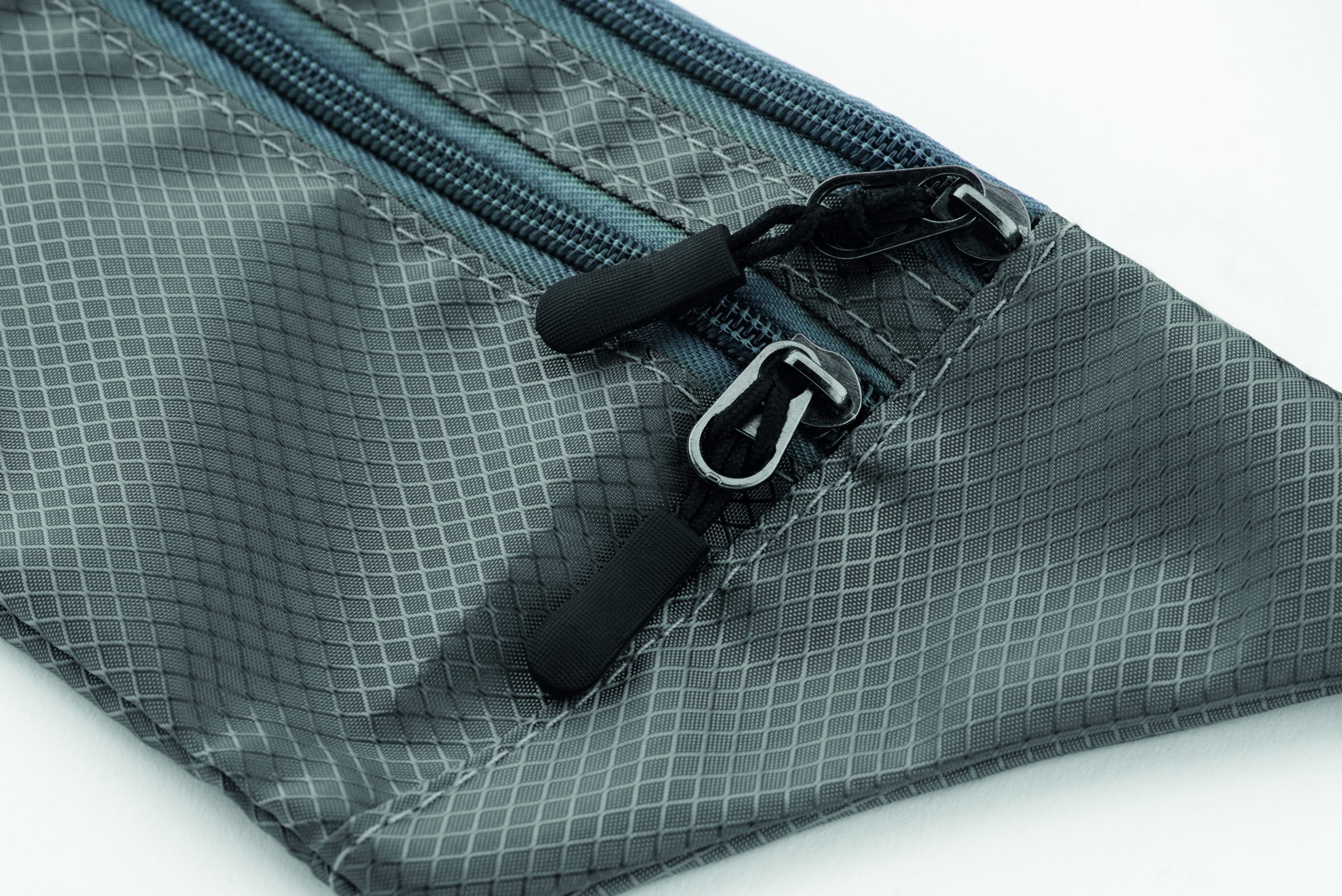 Saszetka na biodro z żakardowego poliestru z 2 zapinanymi na zamek przednimi przegrodami, 1 zapinaną na zamek kieszenią z tyłu i regulowanym paskiem w talii.