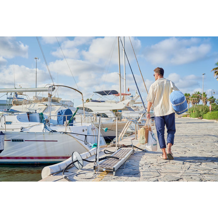 Torba na ramię wykonana z materiałów pochodzących z recyklingu (60% bawełna z recyklingu, 40% poliester z recyklingu) o gramaturze 320 gr/m² z uchwytem z naturalnej bawełny oraz regulowanym i odpinanym paskiem na ramię.