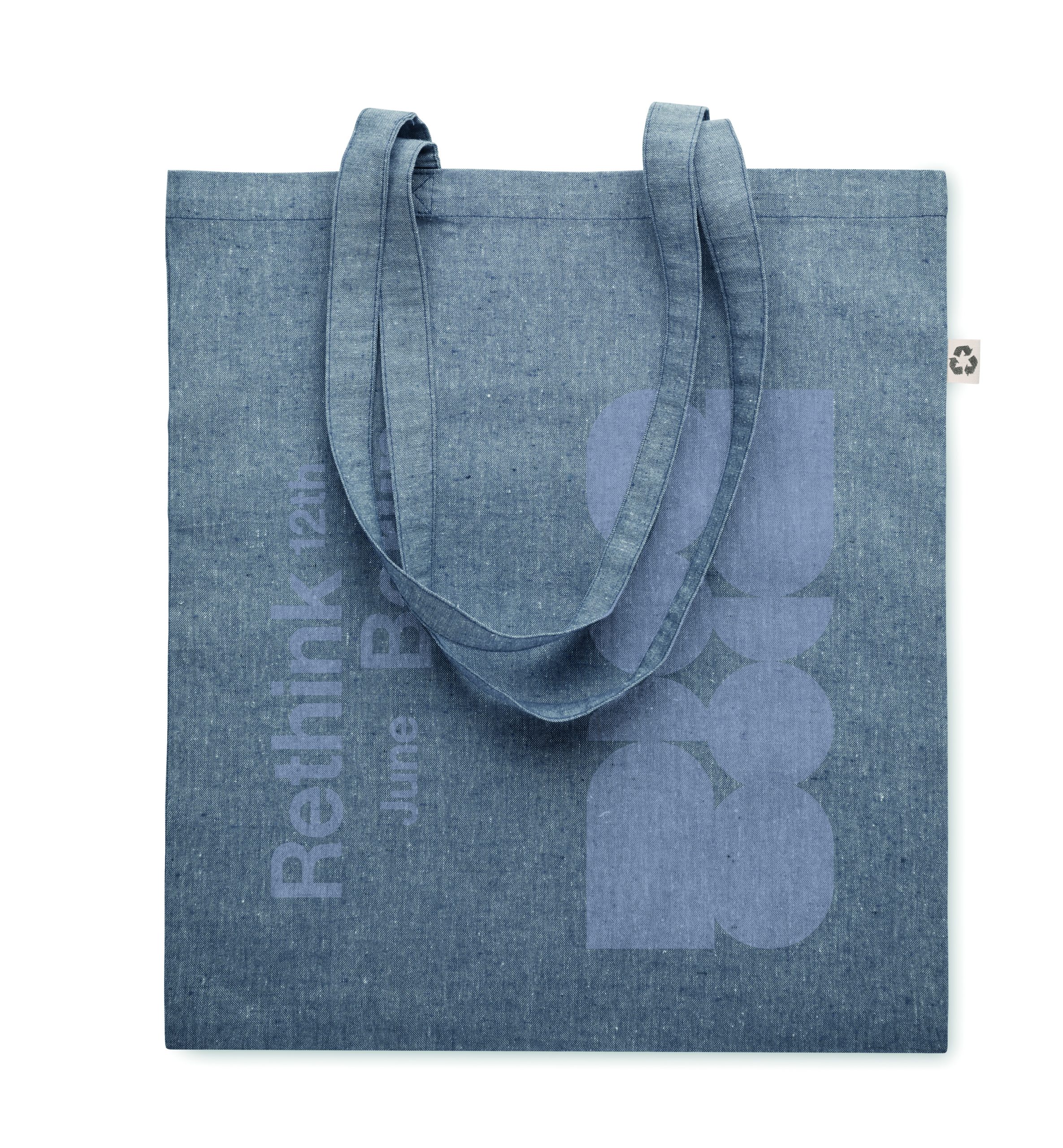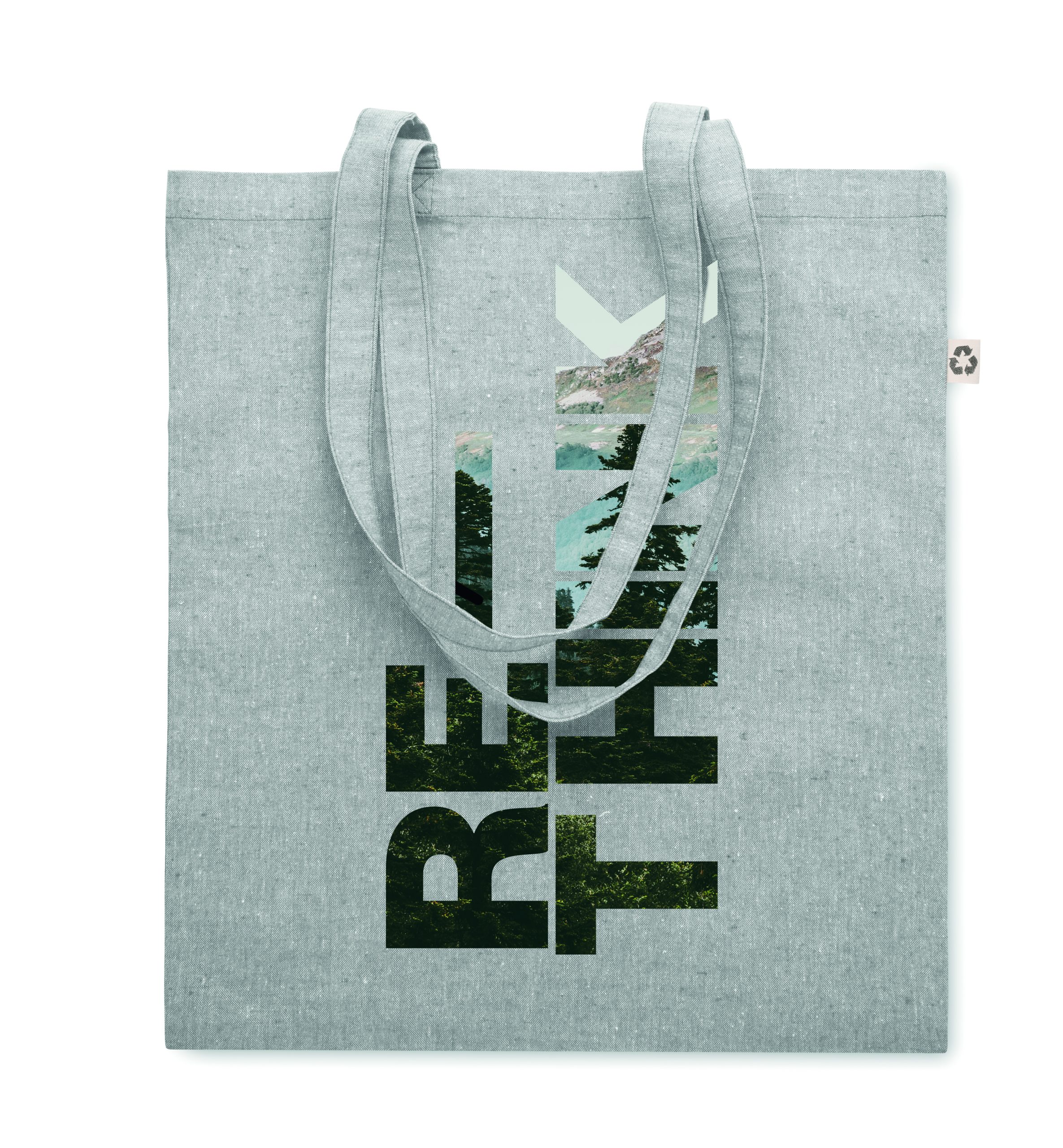 Bawełniana torba na zakupy z recyklingu (80% bawełna z recyklingu, 20% bawełna) z długimi uchwytami. 140 gr/m².